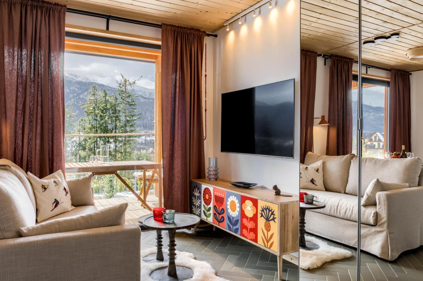 Domek z 2 sypialniami. This chalet offers a hot tub. Featuring a private entrance, this air-conditioned chalet comprises 1 living room, 2 separate bedrooms and 1 bathroom with a shower. Meals can be prepared in the kitchen, which comes with a stovetop, a refrigerator, a dishwasher and kitchenware. Boasting a terrace with mountain views, this chalet also provides a washing machine and a flat-screen TV. The unit offers 4 beds. Domek - 5 osobowy. Powierzchnia pokoju ok.: 45 mkw.