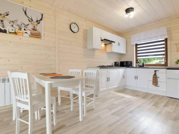Domek z 2 sypialniami. Guests will have a special experience as the chalet offers a fireplace. Featuring a private entrance, this chalet consists of 1 living room, 2 separate bedrooms and 1 bathroom with a shower and a hairdryer. Guests will find a stovetop, a refrigerator, kitchenware and a microwave in the well-equipped kitchen. The chalet also offers a barbecue. Boasting a terrace with garden views, this chalet also provides a tea and coffee maker and a flat-screen TV with satellite channels. The unit offers 5 beds. Domek - 9 osobowy. Powierzchnia pokoju ok.: 70 mkw.