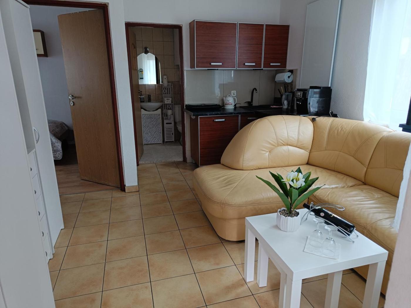 Dom z 2 sypialniami. Meals can be prepared in the well-fitted kitchenette, which comes with a stovetop, a refrigerator, kitchenware and a toaster. Featuring a terrace with garden views, this holiday home also provides a coffee machine and a flat-screen TV. The unit offers 3 beds. Dom wakacyjny - 5 osobowy. Powierzchnia pokoju ok.: 40 mkw.