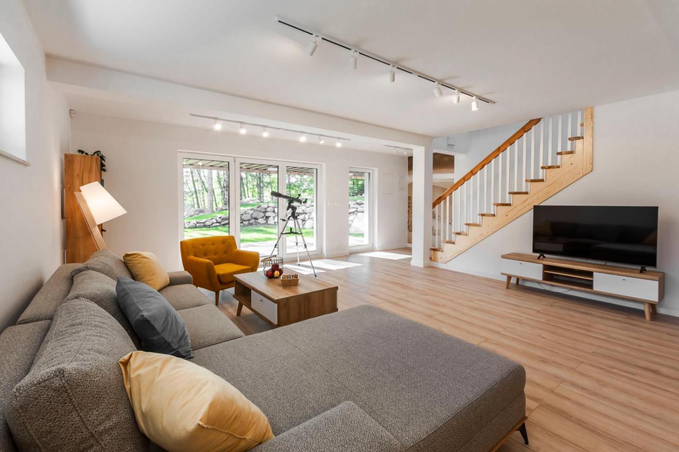 Dom z 2 sypialniami. This spacious holiday home features 1 living room, 2 separate bedrooms and 1 bathroom with a shower and a hairdryer. Guests will find a stovetop, a refrigerator, a dishwasher and a microwave in the well-equipped kitchenette. The holiday home also comes with a barbecue. Boasting a terrace with garden views, this holiday home also features a washing machine and a flat-screen TV. The unit has 4 beds. Dom wakacyjny - 6 osobowy. Powierzchnia pokoju ok.: 116 mkw.